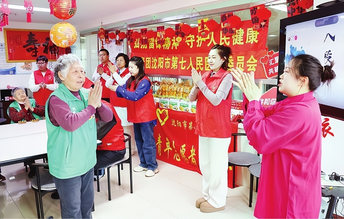 在“3·5”学雷锋纪念日即将到来之际,辽宁省沈阳市第七人民医院开展“弘扬雷锋精神 守护人民健康”志愿服务活动。全院青年医务工作者踊跃参与,在服务奉献中书写新时代的雷锋故事。图为医务人员在指导老人健身。