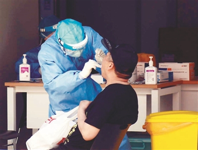 市四院医护人员为市民进行核酸检测。李浩摄