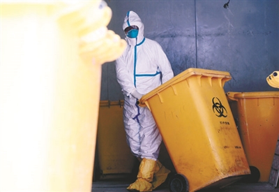 该院疾病预防控制科科长景红告诉记者,在每个隔离病房内,都有固定点位放置医疗废弃物的垃圾桶。“在病房里产生的医疗废物,以及新冠肺炎患者的生活垃圾都视为医疗废物,需要集中处理。”