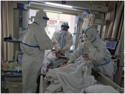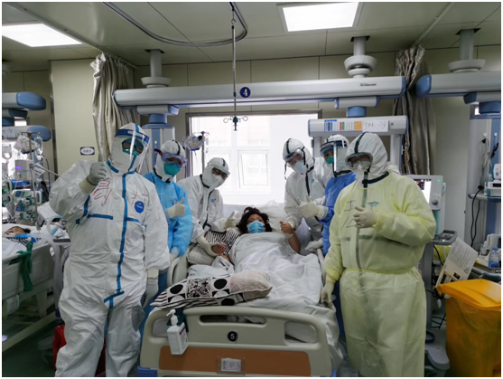 从接手重症救治以来,他马不停蹄的进行队员培训、科室改造、ICU查房、院内会诊,还跟着医生一起倒班,帮助患者俯卧位。他每天“扎”进隔离病房,身穿防护服不吃不喝围在危重患者床前,早期插管、肺复张、俯卧位,运用自己的知识抢救多名重患。国家专家组高度肯定并明确表示:蔡甸区医院的重患不需要转诊,并邀请辽宁重症团队参与北京协和、广州中山医大等重症团队的国家科委相关疫情两项研究。