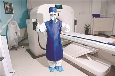 在沈阳市第六人民医院的隔离病房,有一些重症患者无法到放射科做肺部CT检查,这个时候,放射线科影像技师就会穿上三级防护服,再套上重达5公斤的铅衣,到患者的床旁进行床边摄片。王志超做的就是这样的工作。