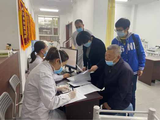 一行人参观了居民填写问卷的现场,由各社区项目负责人介绍工作组成员及具体流程,并就城癌项目高危人群评估工作计划及实际进展进行了汇报。
