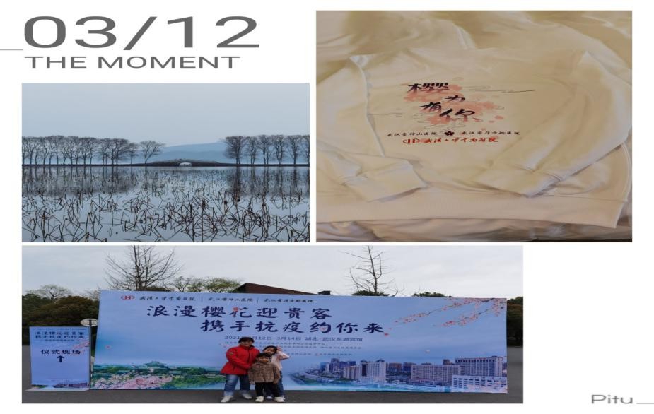 3月13日,是武汉大学樱花的抗疫医护专场。在这里,关晓宣们受到了武大师生的热情款待,当女儿接受人民日报记者的采访时说“武汉是她(妈妈)曾经奋斗的地方,是妈妈的第二故乡”时,关晓宣和雷神山的战友们瞬间都留下来眼泪,“是啊!除了家乡沈阳,这里是我生活时间最长的城市了。感受美丽的樱花,更有幸进入武大的档案馆,了解武大的悠久历史,感恩武大对我们的厚爱。”