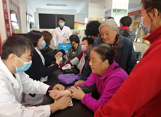 金秋十月爽,九九话重阳。为弘扬中华民族爱老敬老的传统美德,近日,沈阳市沈北新区中心医院青年志愿者服务队走进福宁社区开展以"医疗孝慈行 健康度重阳"为主题的健康义诊活动。为社区老人免费测量血压、听诊检查、中医把脉、健康咨询,为患有慢性病的老人提出服药建议,并针对筛查出的疾病作出风险评估,给予用药指导。