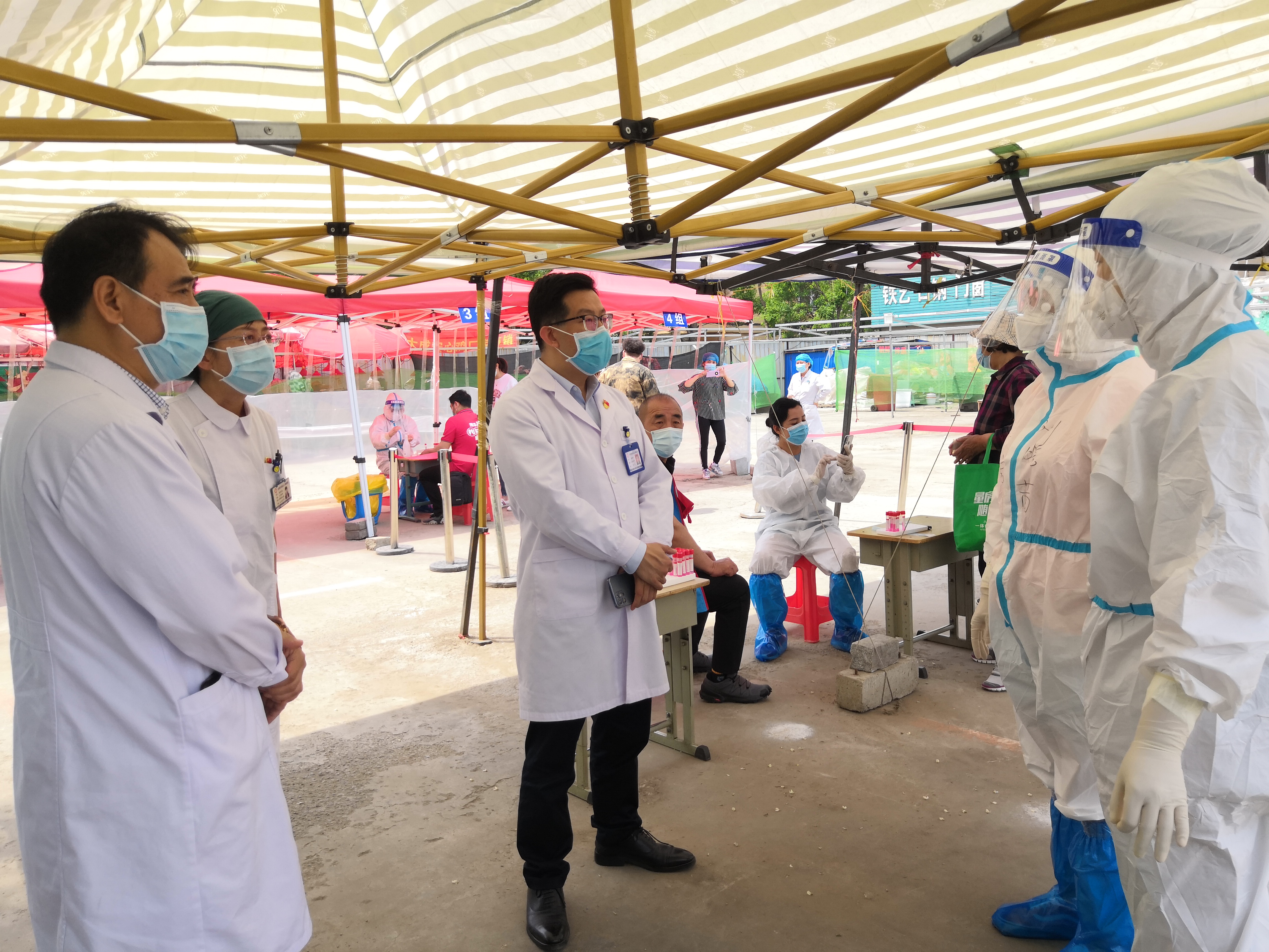 对于全院职工在关键时刻积极投身疫情防控工作的无私奉献精神,院领导给予了积极赞扬。5月20日上午,院长李保军、书记梁煊特来到和平区马路湾街道6个核酸检测采样点,慰问坚守在这里的医护人员,将最亲切的关怀送给在场每一位工作人员。此外,他们还查看了核酸检测采样点的工作场地、人员安排、后勤保障情况及疫情防控措施落实情况,期间不忘多次叮嘱晚班工作人员一定要注意安全。