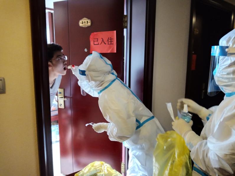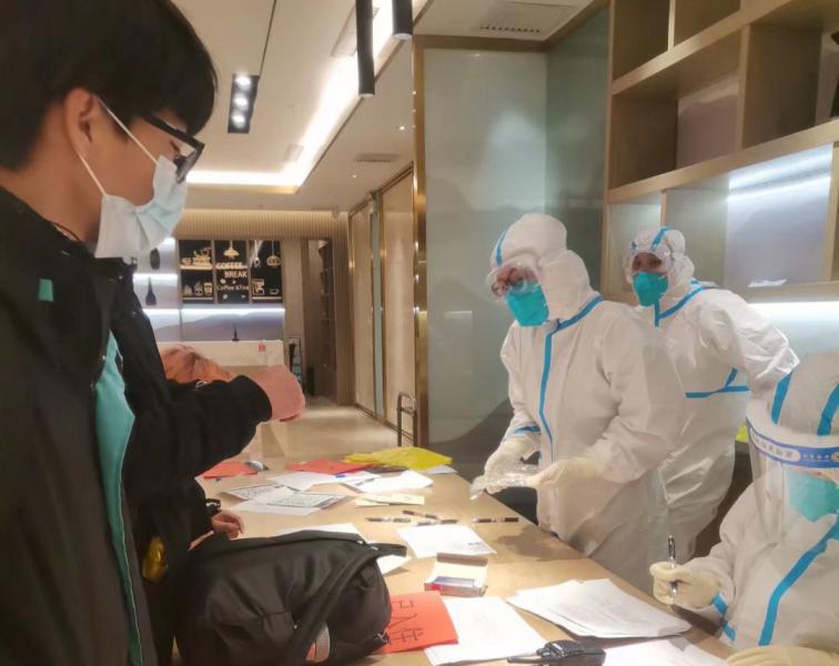 一夜时间,我们接待了98名安置人员,住满了酒店的客房。有情绪激动吵闹的,有抑郁寡欢不出声的,还有迟迟不接电话的,我们都会格外小心、倍加谨慎地妥善处理。主动为他们送去精神的慰藉,除去心里的困惑,解决个人生活问题;积极建立微信服务群、工作群,一对一答疑。按照集中隔离工作要求做好每人的核酸检测,体温时时监测和日常环境物表消杀。正当我忙出头绪,稍微轻松点时,晚上接到院里紧急通知,要求我火速回到本单位参加全民核酸采集工作。疫情就是命令,防控就是责任。我接到命令,做完个人核酸检测,整理好个人物品,次日重返我的工作单位。