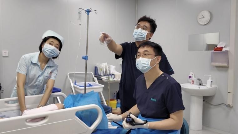 接诊的矫树华主任团队决定为李阿姨实施内镜逆行阑尾炎治疗术(ERAT)。这是一种创新的微创治疗技术,通过结肠镜经肛门进入肠道,直达阑尾开口,解除阑尾腔的梗阻,从而治疗阑尾炎。