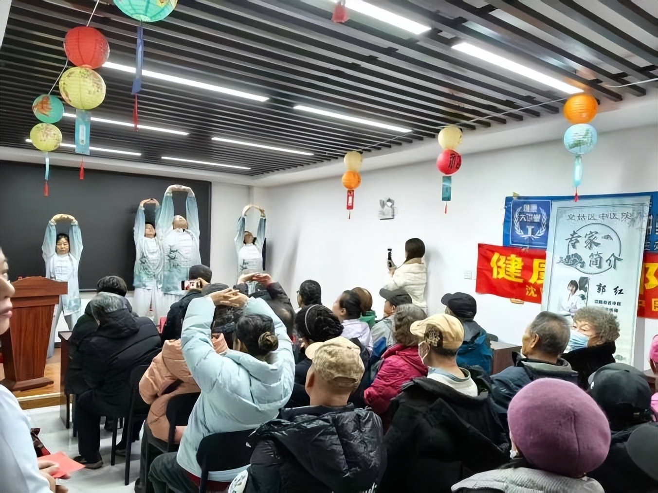 活动现场设置多元体验区,让居民沉浸式感受中医药魅力。健康讲座围绕“冬藏”养生与药食同源知识展开,讲解深入浅出;趣味游戏区吸引居民在玩乐中辨识药材、了解经络;代茶饮品尝区提供多种冬季特调养生茶,暖意融融;传统疗法体验区可亲身感受铜砭刮痧、耳穴压豆等“简便廉验”的技艺;专业人员还带领居民习练八段锦,在舒展中积蓄活力;基础健康筛查区则提供血压、血糖检测,及时给出健康建议。各项活动干货满满,互动频繁,让中医药知识生动可感、融入日常。