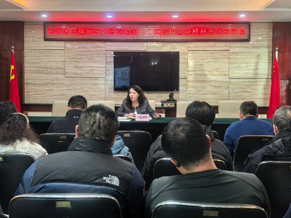 近日,大东区卫生健康局召开全区卫健系统党的二十届四中全会精神宣讲报告会。党组书记、局长周锦玲作宣讲报告,局班子成员、机关各科室负责人、基层单位主要领导及区社会办医协会负责人等40余人参加会议。