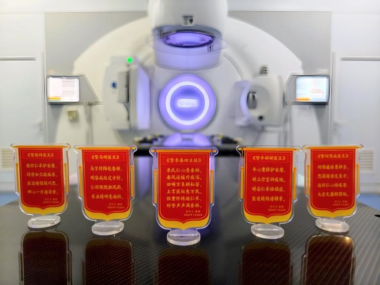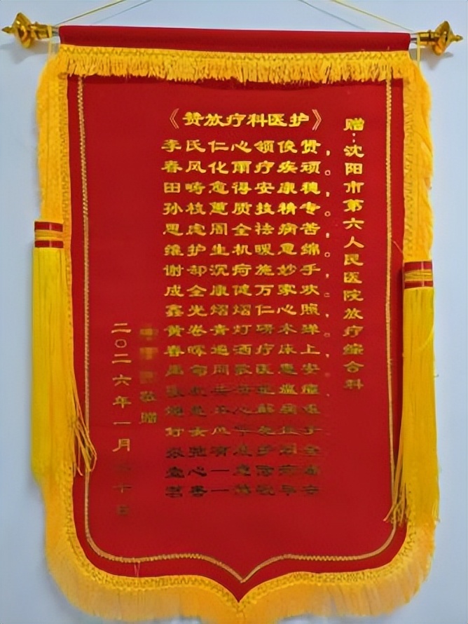 近日,沈阳市第六人民医院肿瘤放疗综合科团队收到了一份特殊的“礼物”——用医护人员名字所作藏头诗为内容的锦旗,洋洋洒洒数十言背后是一位脑继发恶性肿瘤晚期患者的真情流露。面对棘手的病情,肿瘤放疗综合科团队应用先进的调强放疗(IMRT)技术,保证了治疗的顺利推进,也让濒临绝望的患者找回了活下去的希望。