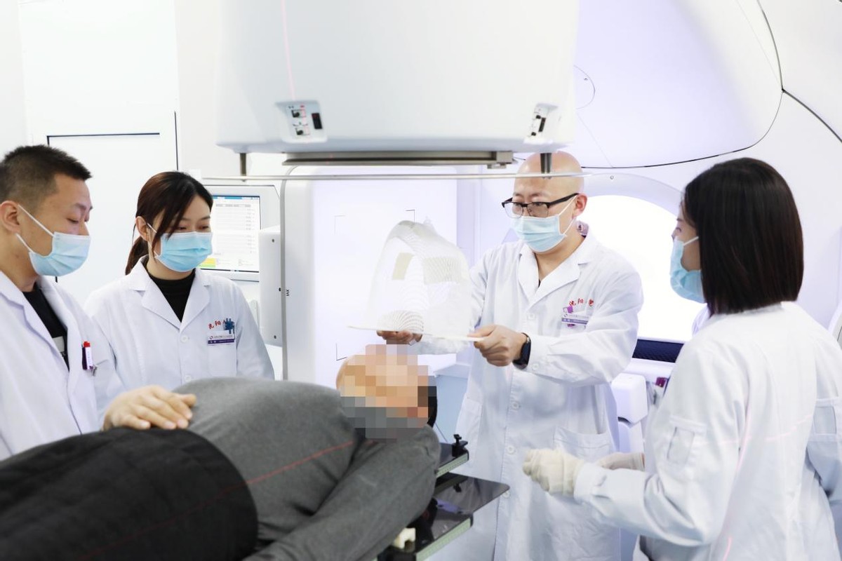 李春田介绍,对丁先生开展治疗,最大的挑战在于放疗剂量的把控。剂量过大可能加重神经损伤,使肢体瘫痪、频发癫痫等进一步恶化,剂量不足则无法有效抑制颅内分散的肿瘤,达不到预期效果。经过讨论,肿瘤放疗综合科团队选择了IMRT技术,这一技术能更加精准地定位肿瘤病灶,使射线剂量高度集中于肿瘤组织,并最大限度减少对周围正常组织的照射,从而打破了常规放疗方案难以适配晚期多发转移复杂病情的局限。