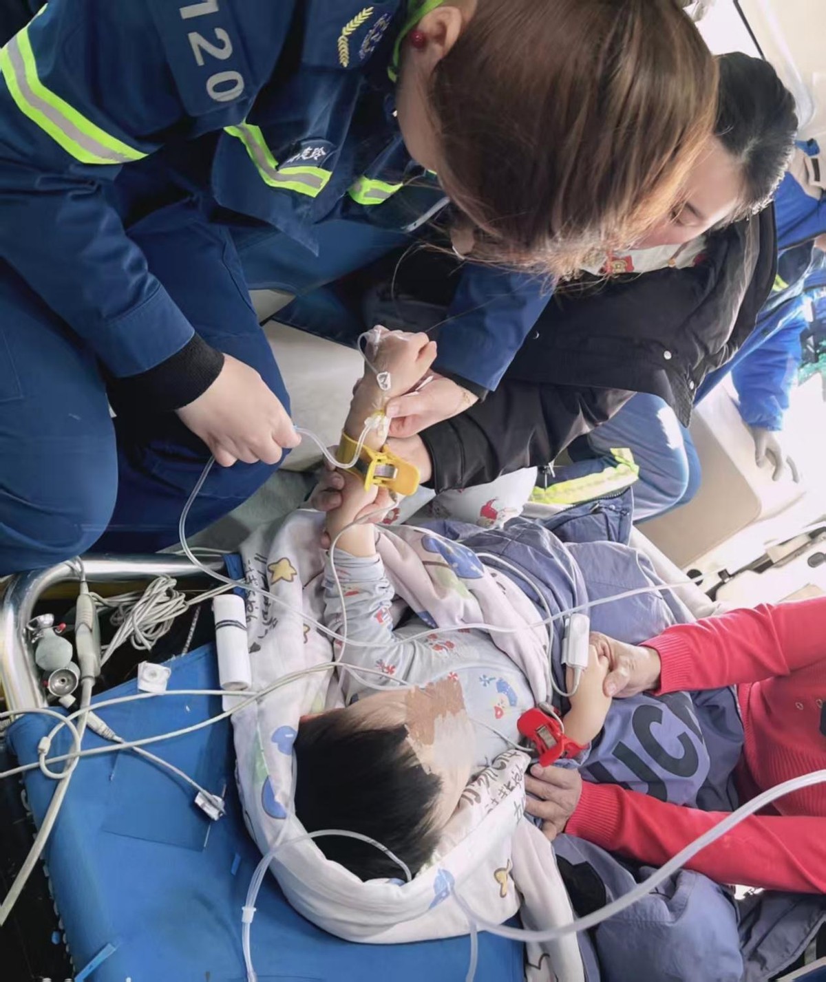 当天,沈北新区某小区的出诊指令响起,沈阳急救中心皇姑第二分中心急救小组再次出诊。面对一名3岁半男孩因高热引发惊厥,四肢抽搐、意识模糊,面对哭闹不安、血管纤细的幼童,她沉着冷静,凭借多年临床经验再次“一针见血”,快速建立静脉通路,推注止惊药物,执行医生医嘱,随着药物缓缓注入,男孩抽搐停止、意识恢复,危机成功化解。