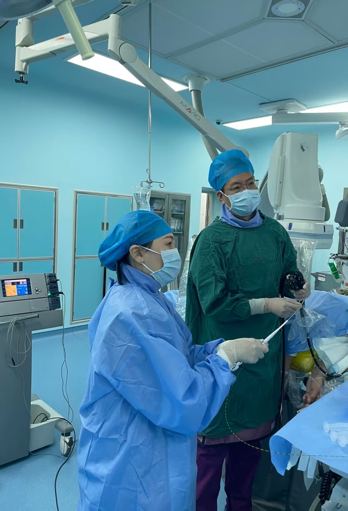 手术面临的是“三重门”的极限挑战,对医疗团队的综合实力提出极高的要求,高龄与房颤的风险、极度凶险的解剖变异、死亡风险的博弈,团队全程紧密配合,局麻状态下,患者保持清醒并配合操作,术者需在视野受限、支撑力不足的憩室内,进行“毫厘之间”的精准操作,既要解决梗阻,又要绝对避免穿孔,对操作技巧的要求近乎苛刻。凭借丰富的临床经验、精湛的镜下技艺,团队成功突破重重阻碍,术中精准克服憩室内视野不佳、操作角度刁钻等难题,巧妙避开脆弱的憩室壁,精准定位乳头开口,从内镜进镜到完成取石引流,整个手术流程仅耗时30分钟,既彰显了团队娴熟的技术功底,更最大程度减少了患者术中的痛苦与手术风险。