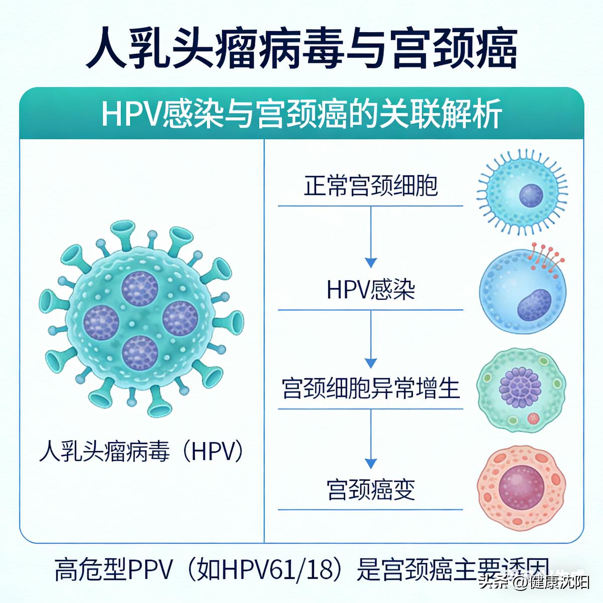 HPV从感染到癌症,大约需要数年到数十年。常见HPV有20多种亚型,可分为低危型和高危型,低危型主要与生殖器疣等有关,高危亚型与子宫颈癌和癌前病变密切相关。