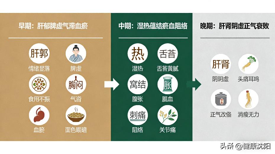 晚期(肝肾阴虚、正气衰败):身体极度虚弱。此时治疗重在滋补肝肾、益气养血,以提高生存质量、延长生存期为主要目的。