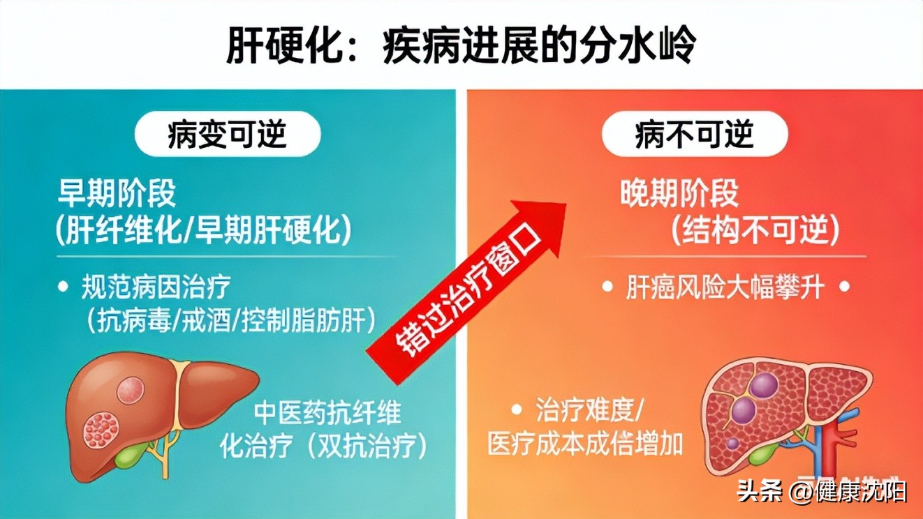 因为在肝纤维化、早期肝硬化阶段,病变是可逆的。通过规范的病因治疗(如抗病毒治疗、戒酒、控制脂肪肝),配合中医药的抗纤维化治疗,也就是我们常说的 “双抗治疗” ,受损的肝脏完全有机会实现 “逆转”或“再代偿” ,回归健康轨道。一旦错过这个窗口,肝脏结构发生不可逆改变,进展为肝癌的风险就会大幅攀升,治疗难度和医疗成本也会成倍增加。